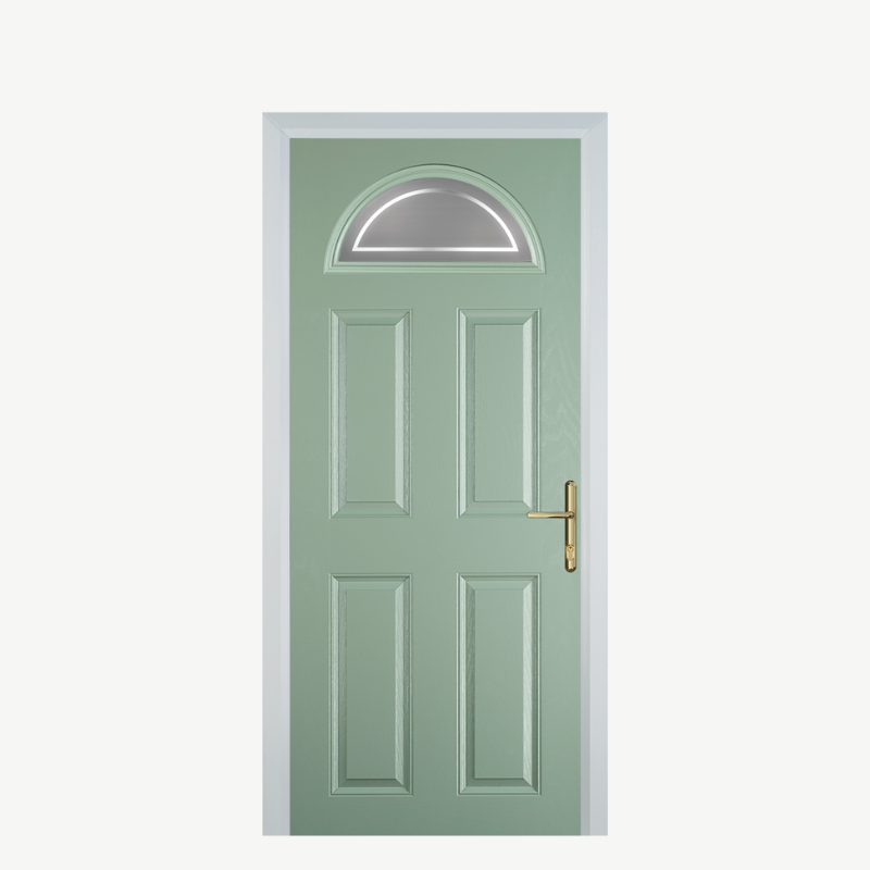 Introducing the Door D 4 Panel 1 Arch in Chartwell Green Enfield, a sophisticated and stylish addition to your home. This composite front door not only enhances your property's curb appeal but also provides unparalleled security and insulation. Crafted with precision, the door embodies a perfect blend of modern design and traditional aesthetics.