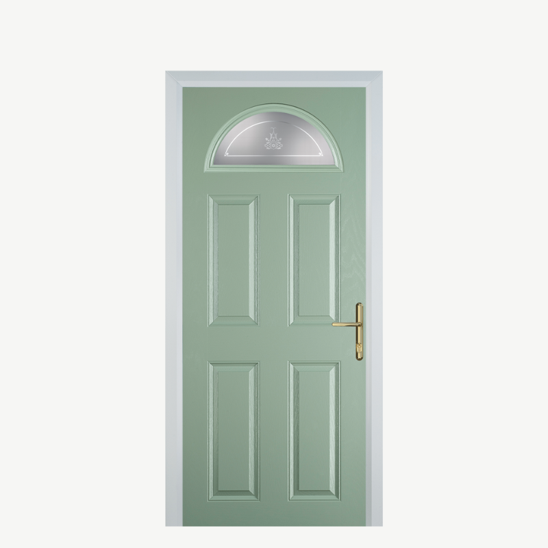 Introducing the Door D 4 Panel 1 Arch in Chartwell Green from Straxton, a perfect blend of style and functionality for your home. This exquisite composite front door not only enhances your property's curb appeal but also provides superior security and durability, making it an ideal choice for any homeowner seeking elegance and practicality.