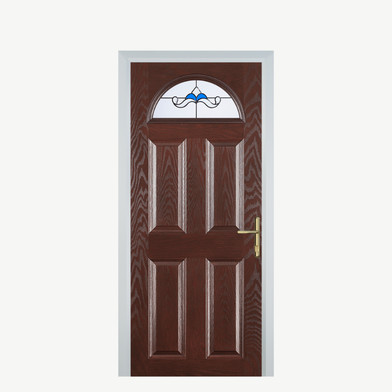 Introducing the Door D 4 Panel 1 Arch in Dark Wood Crystal Bohemia Blue, a stunning addition to your home that combines elegance with durability. This composite front door not only enhances your entryway but also offers exceptional security, making it a perfect choice for modern living.