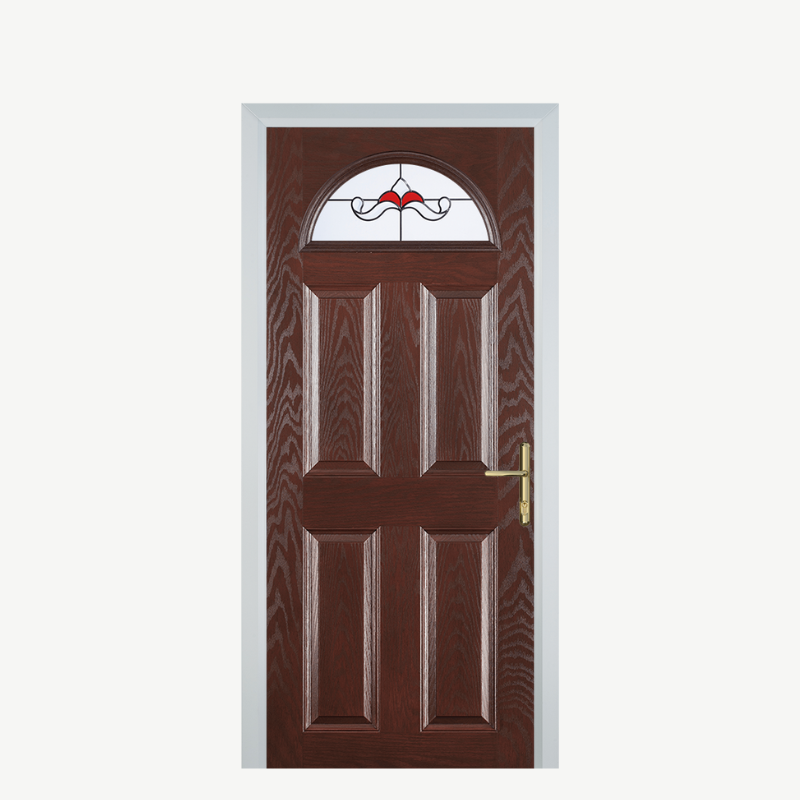 Door D 4 Panel 1 Arch Dark Wood Crystal Bohemia Red