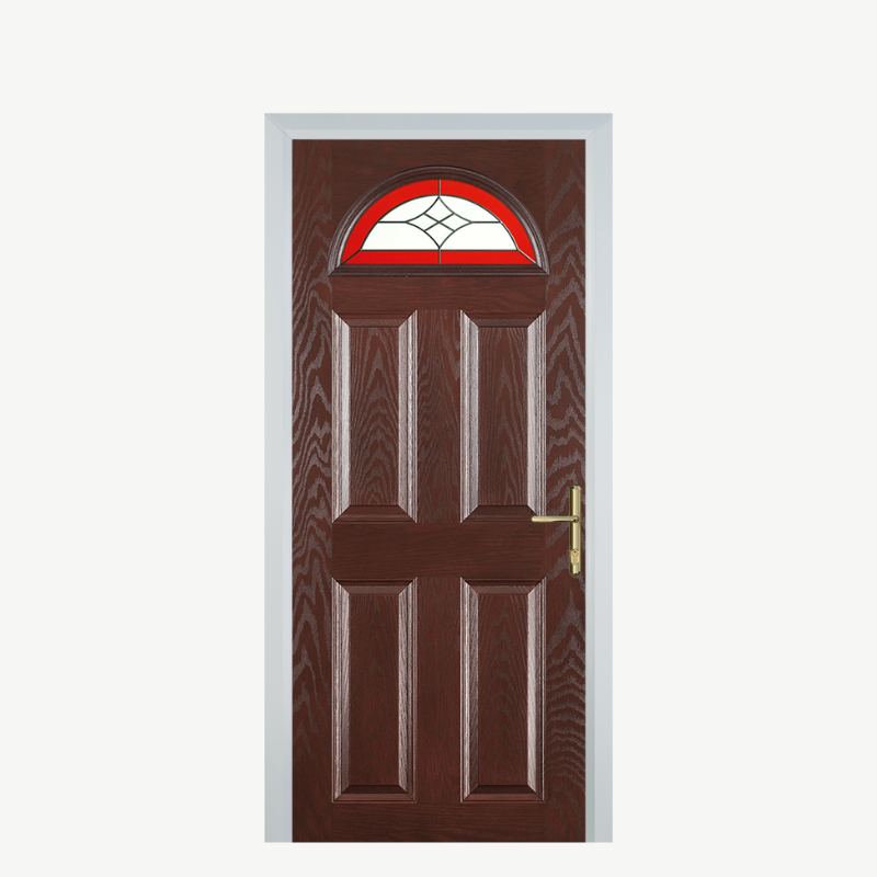 Introducing the Door D 4 Panel 1 Arch in Dark Wood with a stunning Crystal Harmony Red finish, where elegance meets durability. Perfectly designed for those who appreciate both style and substance, this door enhances your home’s entrance with a touch of sophistication and warmth.