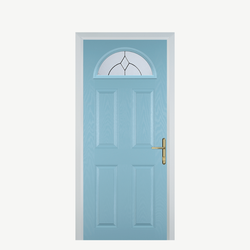 Introducing the Door D 4 Panel 1 Arch in Duck Egg Blue – a stunning blend of classic design and modern durability. This composite front door is not only a striking addition to your home's exterior but also serves to enhance security and energy efficiency.