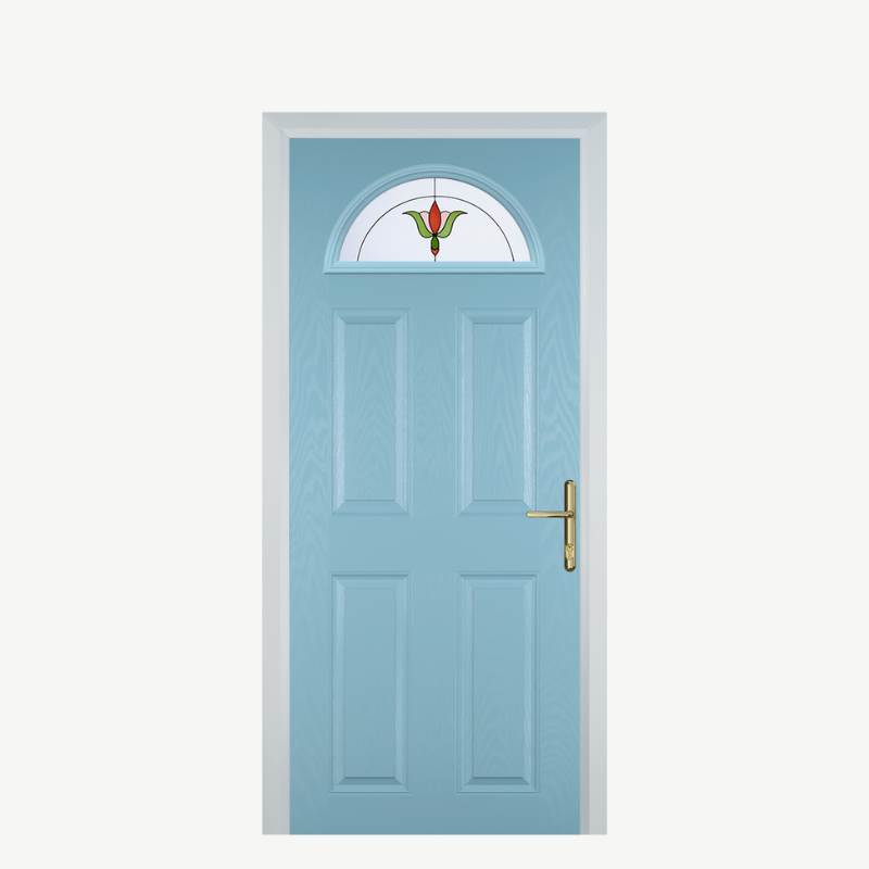 Introducing the Door D 4 Panel 1 Arch in a stunning Duck Egg Blue Fleur finish, a remarkable addition to your home that combines elegance with practicality. This composite front door is designed to enhance your entryway while providing superior security and insulation.
