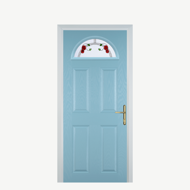 Crafted from high-quality composite materials, this door is built to withstand the elements. To maintain its beauty, simply wipe clean with a damp cloth as needed. Choose the Door D 4 Panel 1 Arch Duck Egg Blue Mackintosh Rose for a stylish and reliable entrance that combines timeless elegance with modern performance.
