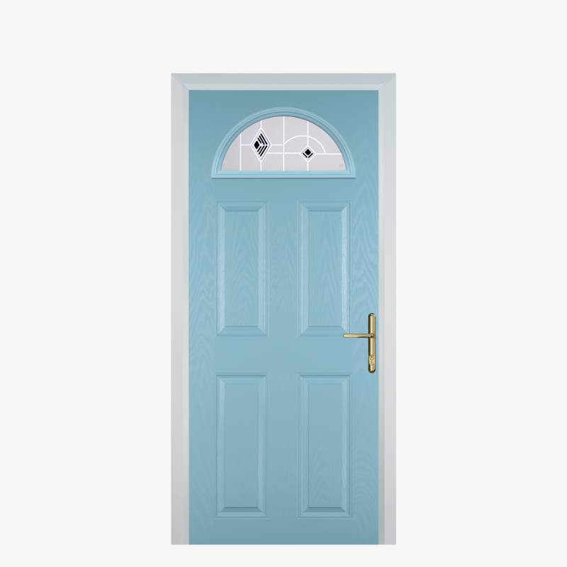 Introducing the Door D 4 Panel 1 Arch in a stunning Duck Egg Blue finish, designed to enhance the entrance of your home with elegance and style. This composite front door combines durability with aesthetic appeal, making it an ideal choice for homeowners seeking both security and beauty.