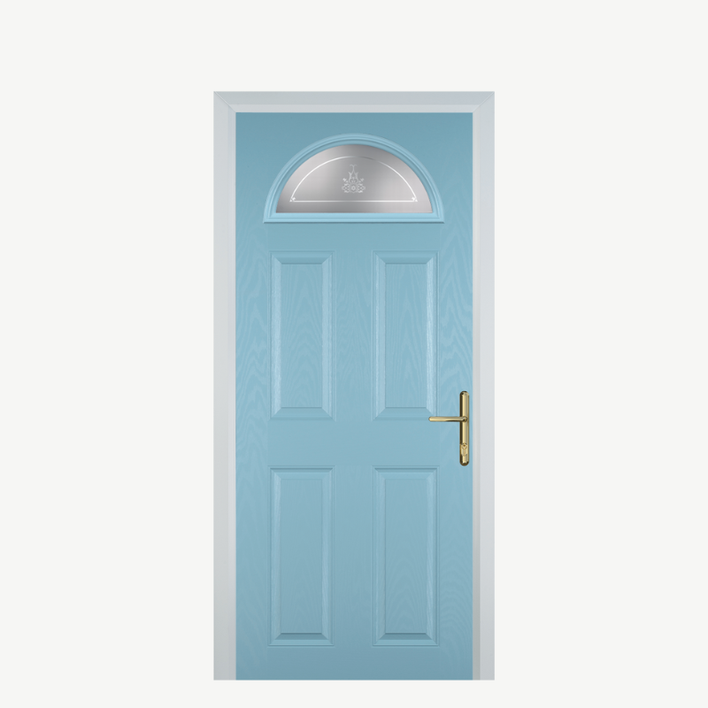 Introducing the Door D 4 Panel 1 Arch in a stunning Duck Egg Blue finish, a perfect blend of style and functionality for your home. This composite front door not only enhances your property's curb appeal but also provides exceptional durability and security.