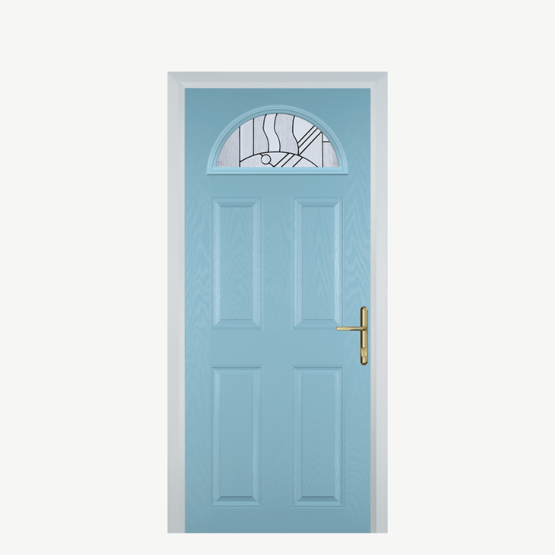 Introducing the Door D 4 Panel 1 Arch in a stunning Duck Egg Blue finish. This elegant composite front door is designed to enhance the aesthetic appeal of your home while providing superior durability and security. Ideal for both modern and traditional settings, this door promises to make a lasting impression.