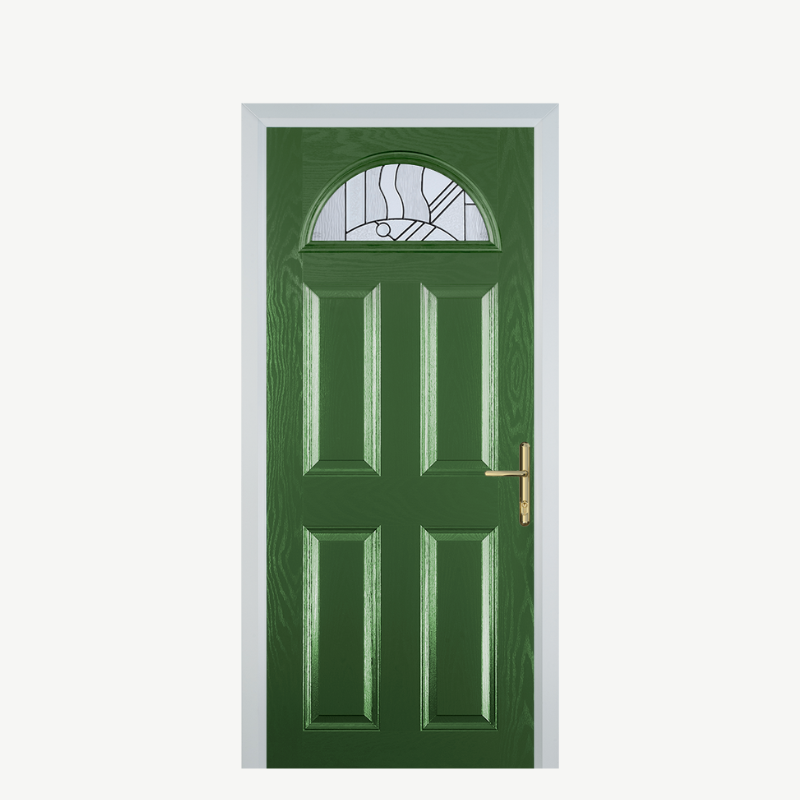 Introducing the Door D 4 Panel 1 Arch in a stunning Fern Green finish, an exceptional choice for homeowners seeking to enhance their entryway with a modern and artistic touch. This composite front door combines aesthetic appeal with durability, making it an ideal investment for any residential property.