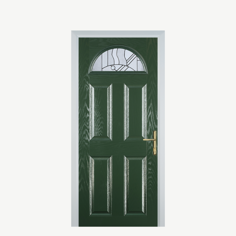 Introducing the Door D 4 Panel 1 Arch Green Zinc Art Abstract, a stunning addition to your home that perfectly blends style and functionality. This composite front door not only enhances your entrance but also provides exceptional durability and security, making it an ideal choice for discerning homeowners.