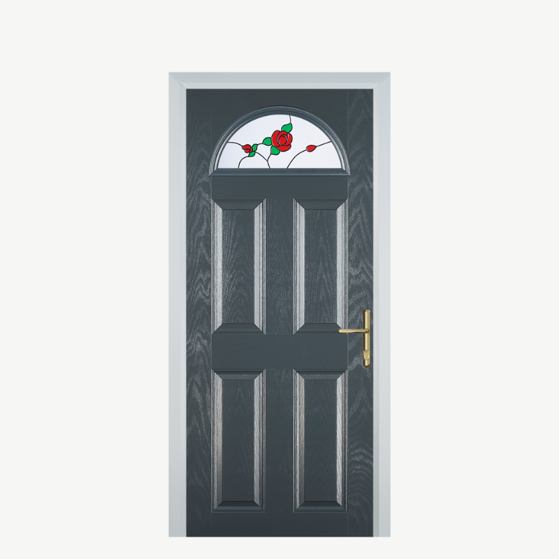 Introducing the Door D 4 Panel 1 Arch Grey English Rose, a perfect blend of elegance and durability for your home’s entrance. This stunning composite front door not only enhances the aesthetic appeal of your property but also provides exceptional security and insulation, making it an ideal choice for modern living.