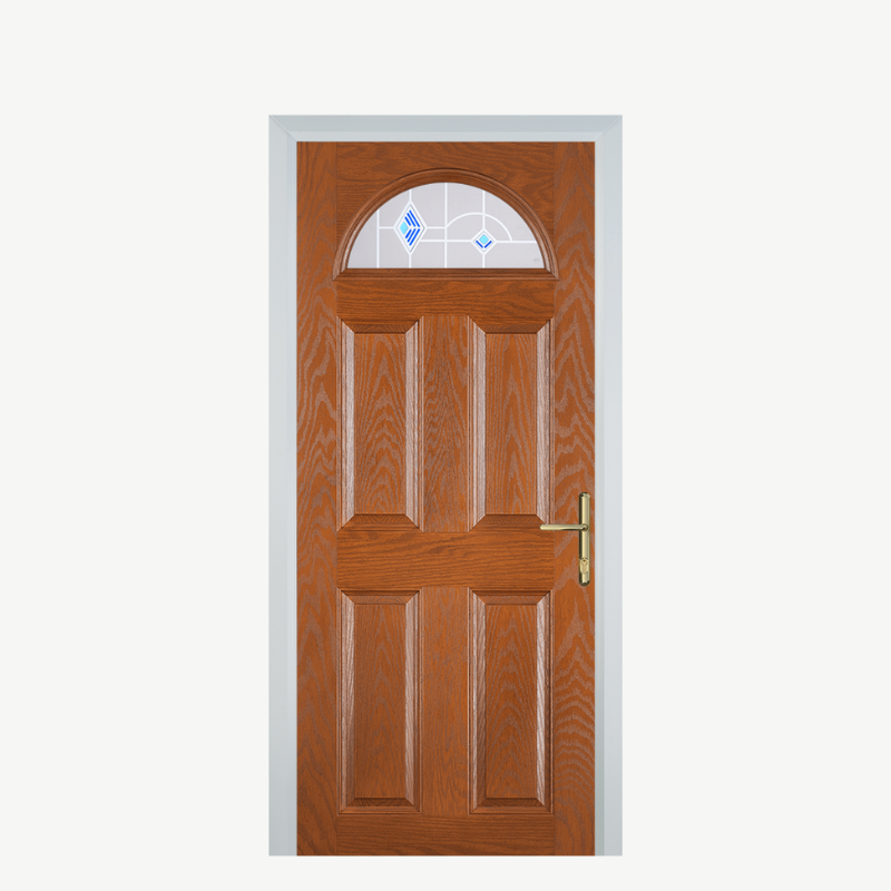 Introducing the Door D 4 Panel 1 Arch Oak Murano Blue, a stunning addition to your home that combines elegance and durability. This beautifully crafted composite front door not only enhances your property's aesthetic appeal but also provides superior security and insulation.