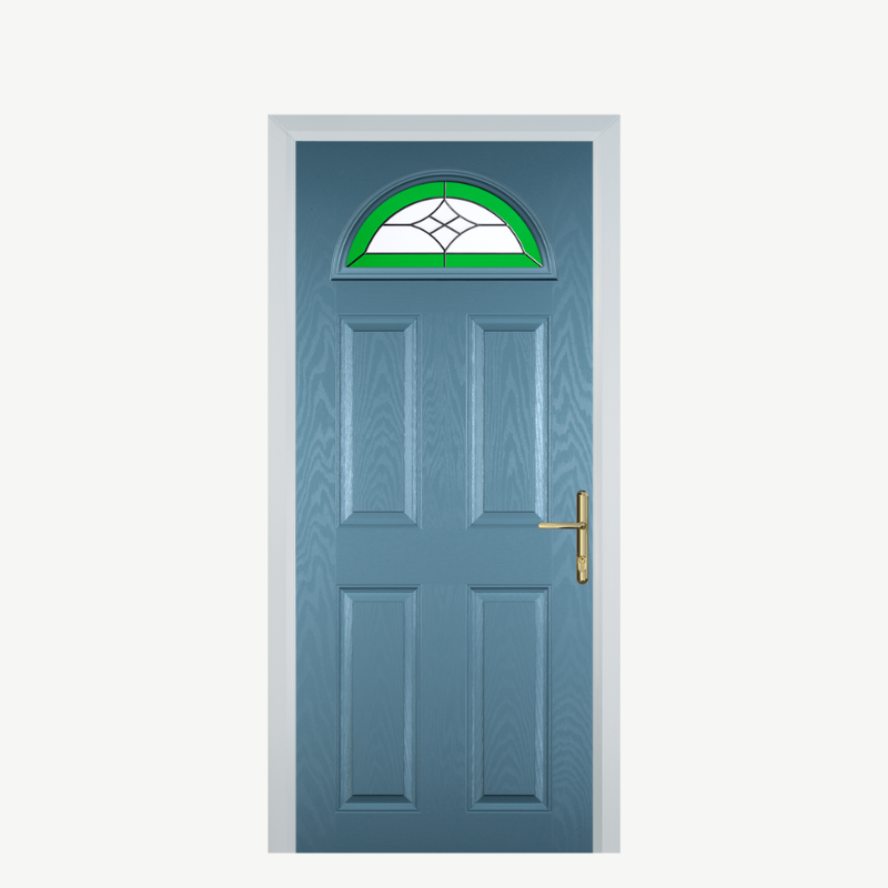 Introducing the Door D 4 Panel 1 Arch in a stunning Pastel Blue finish, designed to elevate the entrance of any home. This composite front door combines aesthetic appeal with functional durability, providing a perfect blend of style and security. It is an ideal choice for those looking to enhance their home's exterior while ensuring reliable performance.