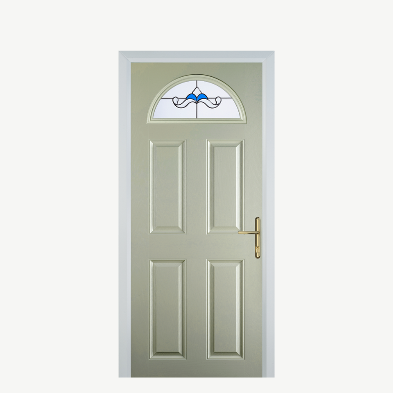 Introducing the Door D 4 Panel 1 Arch in Pebble Grey Crystal Bohemia Blue, a stunning blend of elegance and durability designed to elevate your home’s entrance. This composite front door not only enhances your property's curb appeal but also provides exceptional security and insulation.