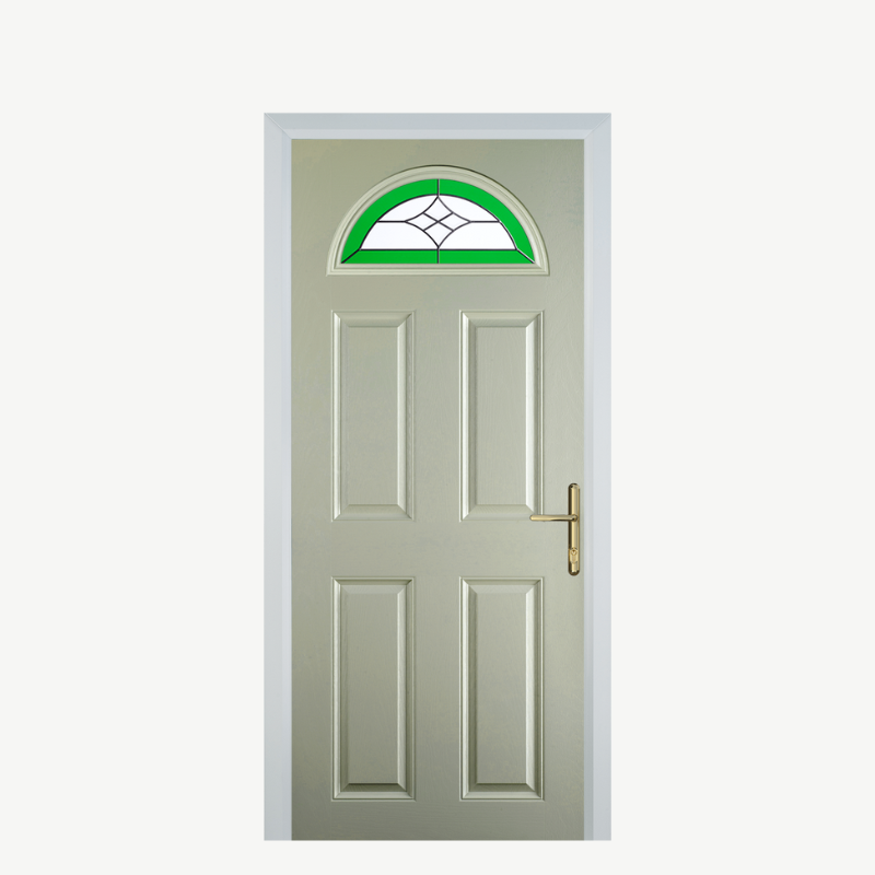 Introducing the Door D 4 Panel 1 Arch in Pebble Grey Crystal Harmony Green, a stunning addition to your home that merges style with functionality. This composite front door is designed to enhance your home's curb appeal while providing superior security and insulation.