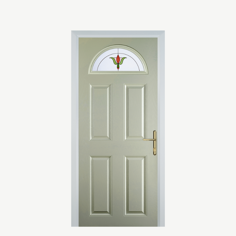 Introducing the Door D 4 Panel 1 Arch in Pebble Grey Fleur, the perfect blend of style and security for your home. This beautifully designed composite front door not only enhances your entryway but also offers exceptional durability and insulation.