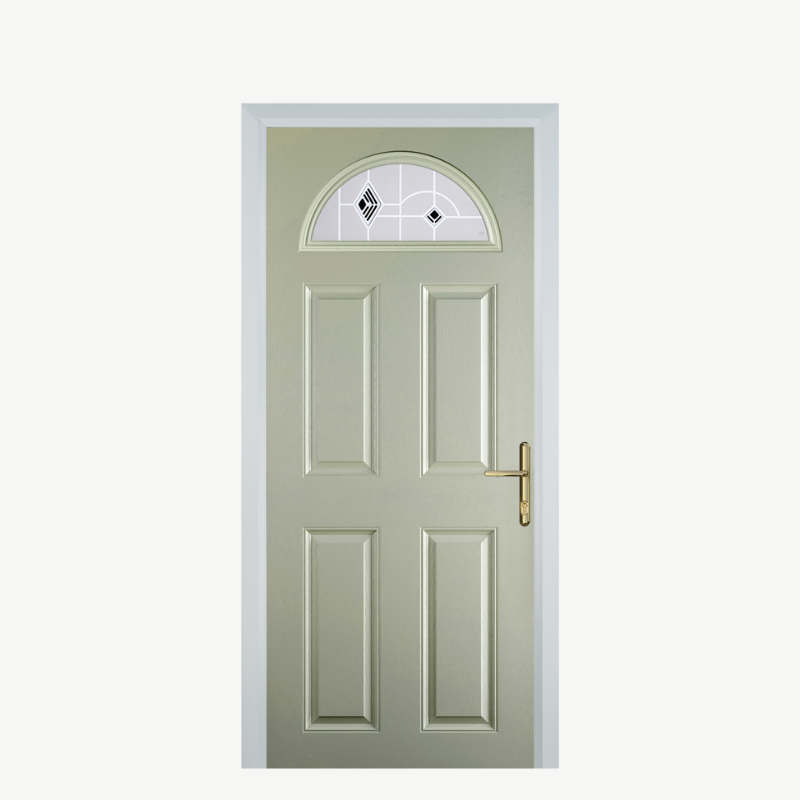 Introducing the Door D 4 Panel 1 Arch in Pebble Grey with Murano Black accents, a perfect blend of elegance and durability for your entryway. This composite front door not only enhances the aesthetic appeal of your home but also offers exceptional security and energy efficiency.