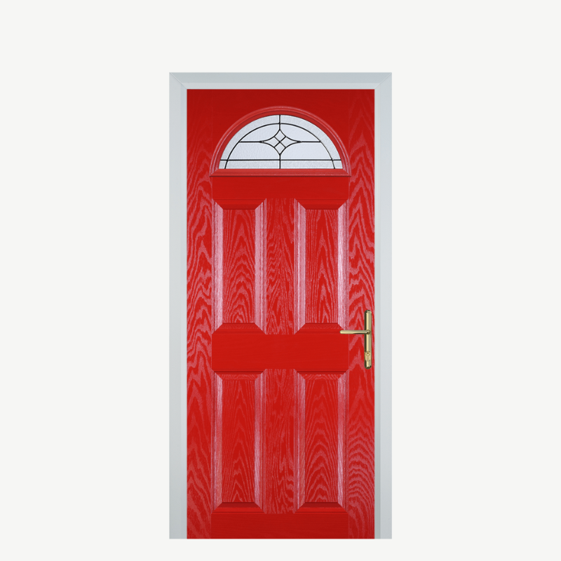 Introducing the Door D 4 Panel 1 Arch Poppy Red (High Gloss) Zinc Art Elegance, a striking addition to any home that effortlessly combines style and functionality. This beautifully crafted composite front door not only enhances curb appeal but also provides durability and security, making it a perfect choice for modern living.