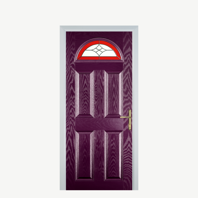 Introducing the Door D 4 Panel 1 Arch Purple Violet Crystal Harmony Red, a stunning addition to your home that combines elegance and security in one exquisite design. This composite front door not only enhances your property's curb appeal but also provides exceptional durability and insulation.