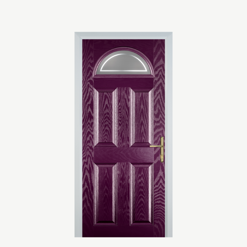 Introducing the Door D 4 Panel 1 Arch in a stunning Purple Violet finish, a perfect blend of style and functionality for your entrance. Designed to elevate the aesthetic appeal of your home, this composite front door not only enhances curb appeal but also provides security and durability.