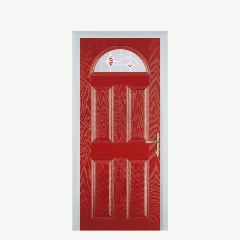 Introducing the Door D 4 Panel 1 Arch in a striking Murano Red, a perfect fusion of elegance and durability designed to enhance your home's entrance. This composite front door not only provides exceptional security but also adds a vibrant touch to your property's curb appeal.
