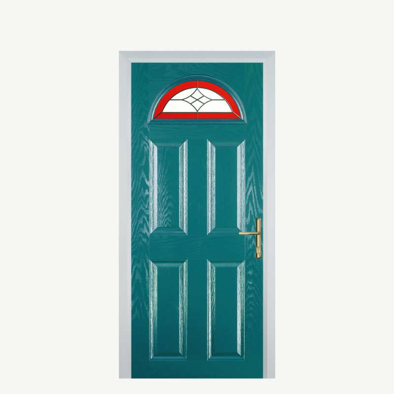 Introducing the Door D 4 Panel 1 Arch in a stunning Turquoise Blue, a perfect blend of elegance and contemporary design. This composite front door not only enhances the aesthetic appeal of your home but also offers durability and security. Its vibrant color and unique arch design make it a standout feature for any entryway.