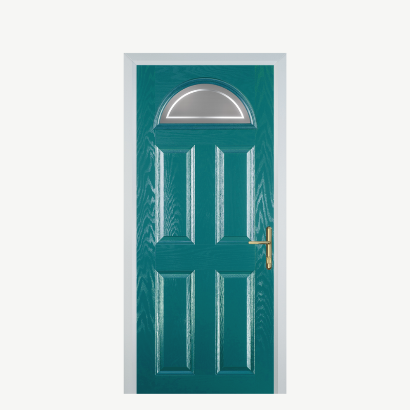 Introducing the Door D 4 Panel 1 Arch in Turquoise Blue Enfield, a stunning composite front door that combines elegance and durability to elevate the entrance of your home. Its captivating turquoise hue not only enhances your property's curb appeal but also offers a modern touch that stands out in any neighborhood.