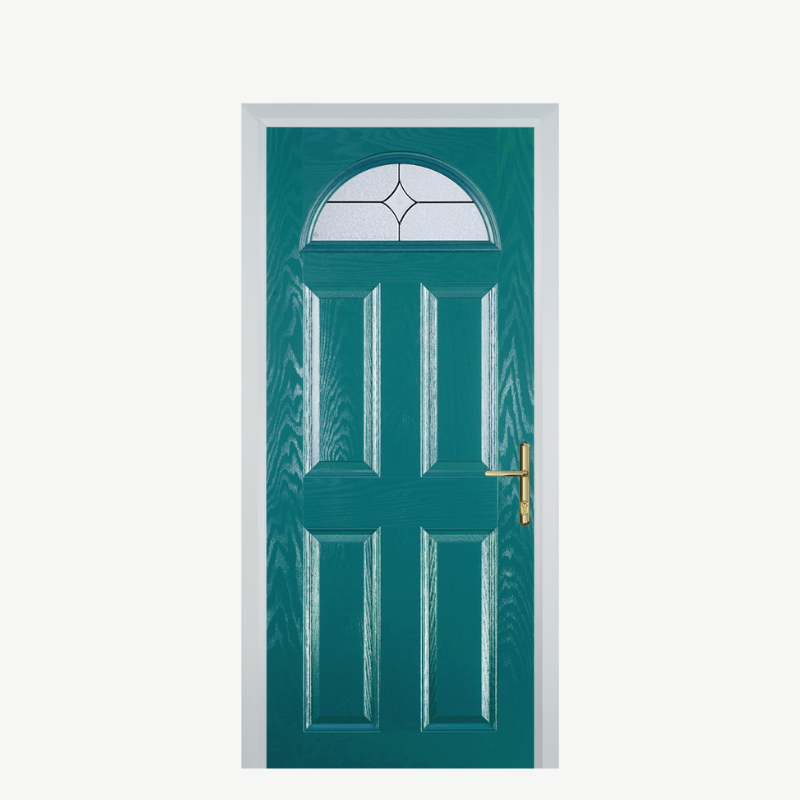 Introducing the Door D 4 Panel 1 Arch in a stunning Turquoise Blue, a perfect blend of style and functionality. This composite front door not only enhances the aesthetic appeal of your home but also provides superior durability and security. Experience the transformative power of color and design with this eye-catching door that makes a bold statement at your entrance.