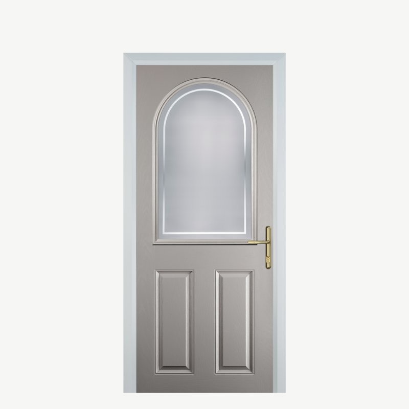 For optimal longevity, simply clean with mild soap and water. Perfect for modern and traditional homes alike, the Door E 2 Panel 1 Arch in Agate Grey is your ideal choice for a stylish yet practical front door solution.