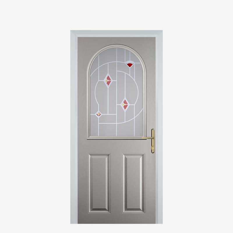 Introducing the Door E 2 Panel 1 Arch in Agate Grey Murano Red, a stunning entryway solution that combines contemporary design with exceptional durability. This composite door not only enhances the aesthetic appeal of your home but also provides security and insulation, making it an ideal choice for any homeowner looking to elevate their entrance.