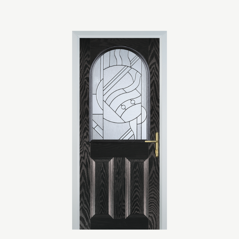 Introducing the Door E 2 Panel 1 Arch Black Brown Zinc Art Abstract, a perfect blend of elegance and durability designed to enhance your entryway while providing robust security. This composite front door not only serves as a stunning focal point for your home but also offers exceptional performance in any weather condition.