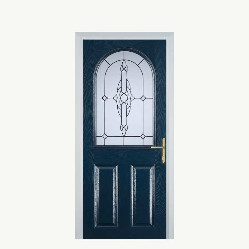 Introducing the Door E 2 Panel 1 Arch Blue Crystal Bohemia Frost, a stunning addition to your home that seamlessly blends elegance with durability. This composite front door not only enhances your home's aesthetic appeal but also provides robust security and insulation.
