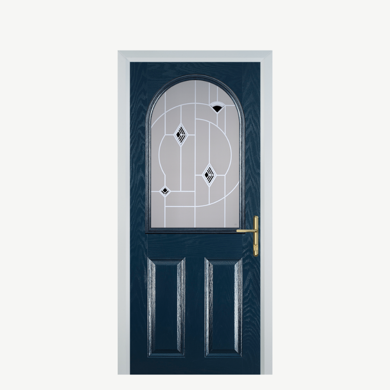 Introducing the Door E 2 Panel 1 Arch Blue Murano Black, an exquisite addition to your home that seamlessly blends style and functionality. This composite front door not only enhances your curb appeal but also provides superior security and insulation, making it a perfect choice for contemporary living.