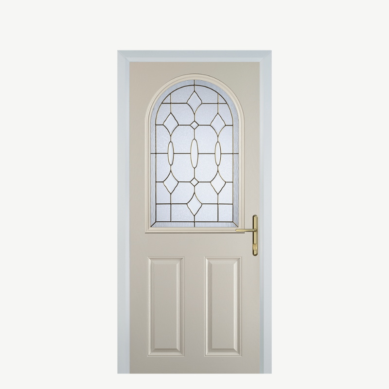Introducing the exquisite Door E 2 Panel 1 Arch in a stunning cream finish, designed to elevate the aesthetic appeal of your home while providing exceptional security and durability. This composite front door is the perfect blend of elegance and functionality, making it an ideal choice for any modern residence.
