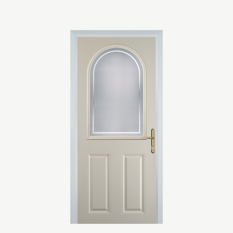 Introducing the Door E 2 Panel 1 Arch Cream Enfield, a stunning addition to any home that combines style, durability, and security. This beautifully crafted composite front door is designed to enhance your entrance while providing exceptional insulation and weather resistance.