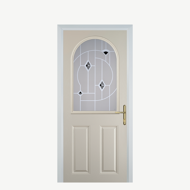 Introducing the Door E 2 Panel 1 Arch in Cream Murano Black, a sophisticated and stylish addition to your entryway that combines elegance with durability. This composite front door enhances your home’s curb appeal while providing enhanced security and energy efficiency.