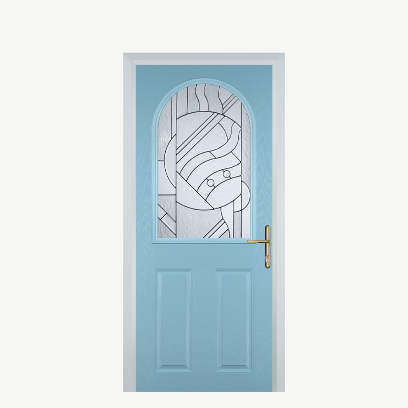 Introducing the Door E 2 Panel 1 Arch in a captivating Duck Egg Blue finish, designed to elevate the aesthetic of any entrance while providing exceptional durability. This composite door seamlessly blends style with functionality, making it the perfect choice for homeowners seeking a sophisticated yet practical solution.