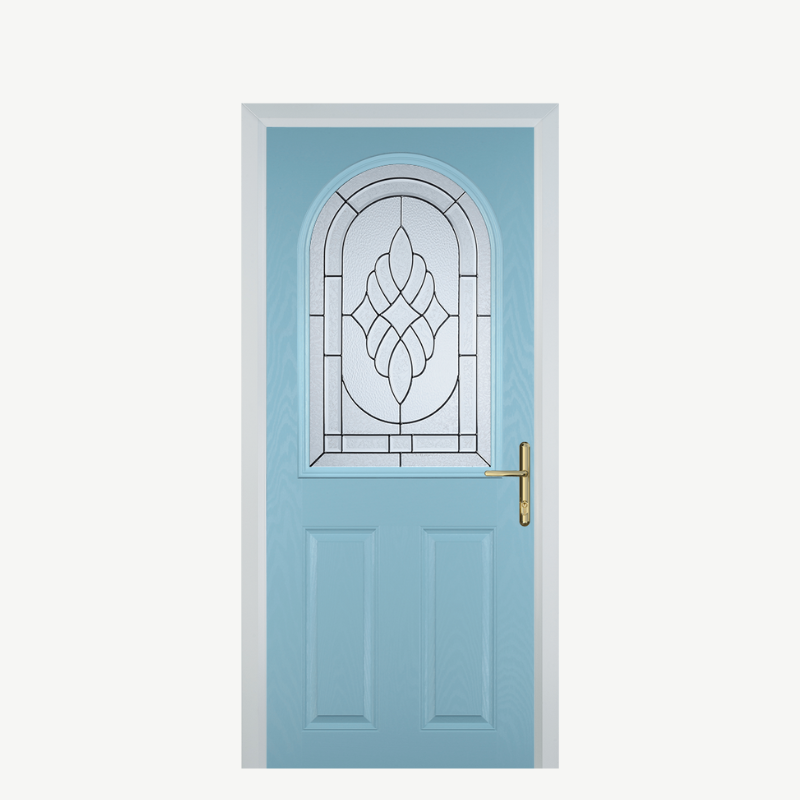Introducing the Door E 2 Panel 1 Arch Duck Egg Blue Zinc Art Elegance, where timeless design meets modern durability. This striking composite front door is not just an entrance; it’s the perfect statement piece that enhances your home's curb appeal while ensuring security and energy efficiency.