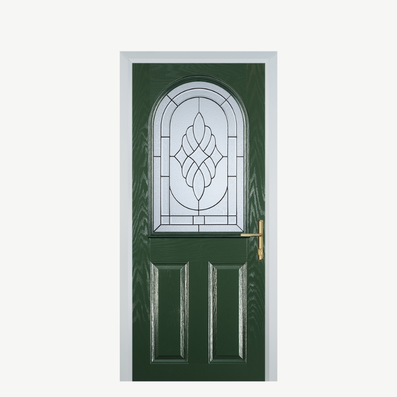 Introducing the Door E 2 Panel 1 Arch Green Zinc Art Elegance, a stunning addition to any home that combines style, durability, and functionality. This exquisite composite front door not only enhances your property’s curb appeal but also offers the security and energy efficiency that modern homeowners desire.