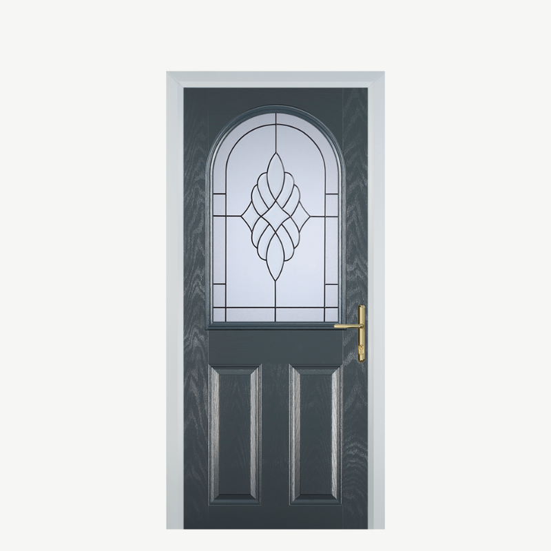 Introducing the Door E 2 Panel 1 Arch Grey Crystal Eternity, a striking addition to any entryway that seamlessly blends elegance and durability. Designed for those who value style and security, this composite front door is perfect for enhancing the aesthetic appeal of your home while providing exceptional performance.