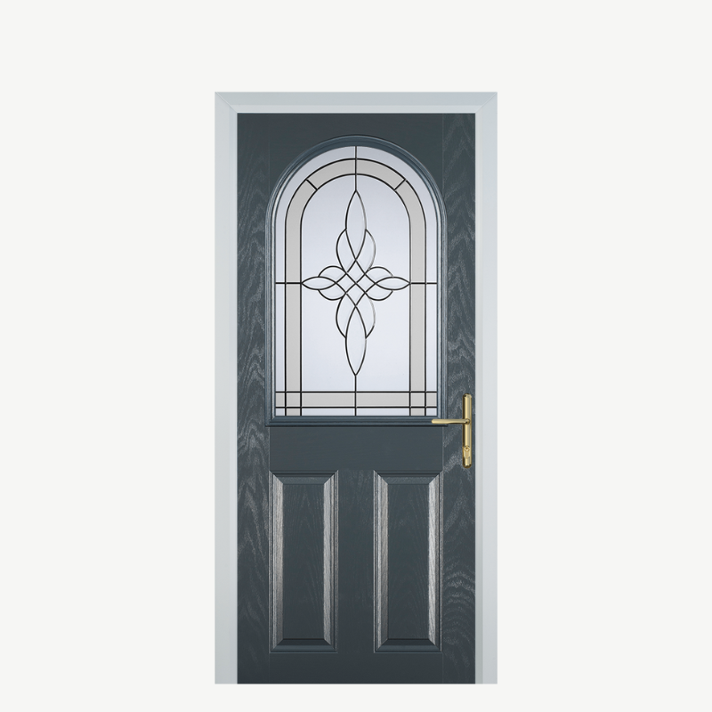 Introducing the Door E 2 Panel 1 Arch Grey Crystal Harmony Frost, a sophisticated addition to any home that seamlessly blends style with functionality. Designed for those who value elegance, this composite front door provides a striking first impression while enhancing security and energy efficiency.