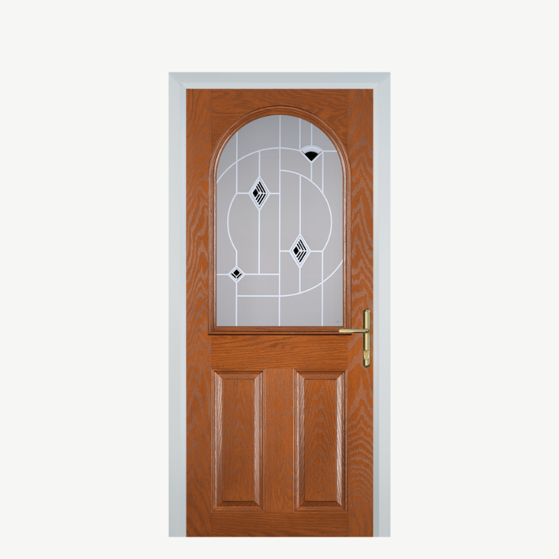 Introducing the Door E 2 Panel 1 Arch Oak Murano Black, a stunning blend of style and functionality that elevates your entrance while ensuring durability. This composite front door is expertly crafted to provide both aesthetic appeal and security, making it the perfect choice for discerning homeowners.
