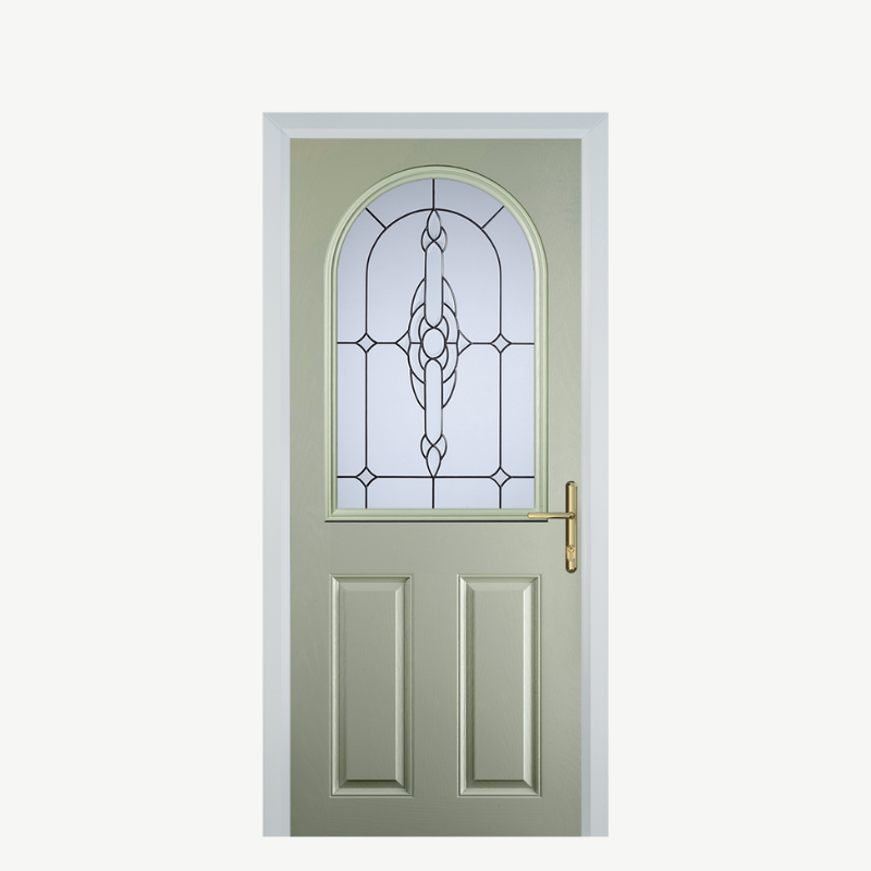 Introducing the Door E 2 Panel 1 Arch in Pebble Grey Crystal Bohemia Frost, a stunning addition to your home that combines elegance with durability. This composite front door is designed to make a lasting impression while providing exceptional security and insulation for your living space.
