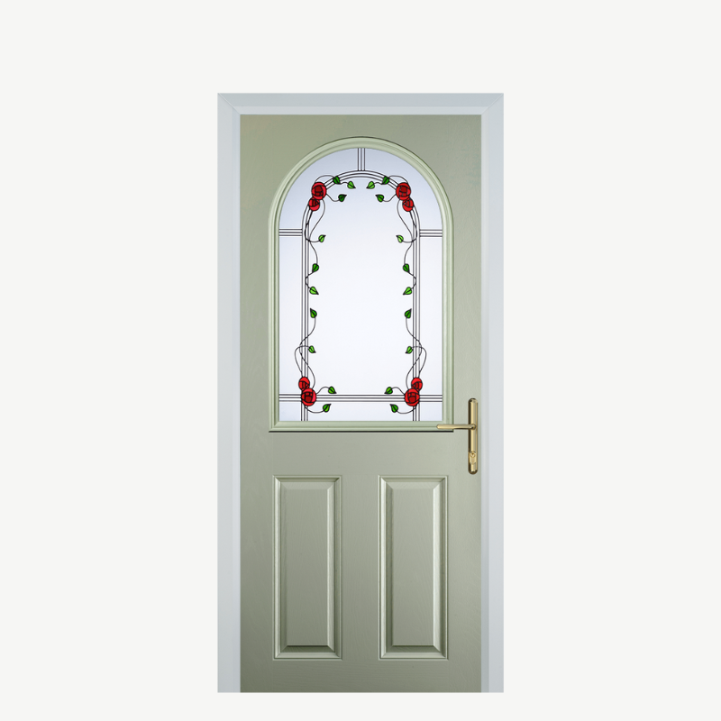 Introducing the Door E 2 Panel 1 Arch in Pebble Grey Mackintosh Rose, a sophisticated addition to any home's entryway. This composite front door combines style and functionality, creating an inviting first impression while ensuring security and durability.