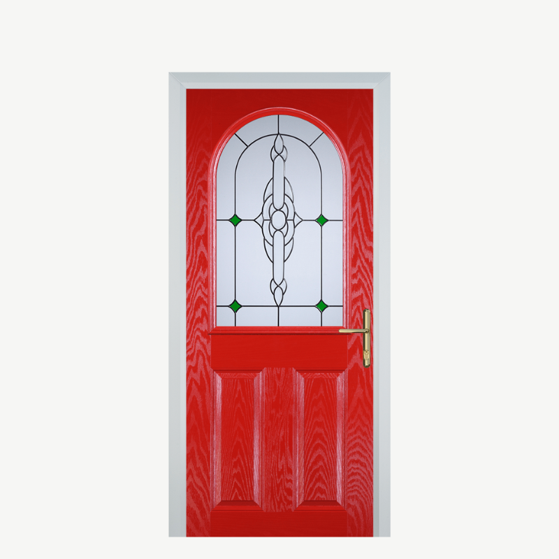 Introducing the stunning Door E 2 Panel 1 Arch in an eye-catching Poppy Red (High Gloss) finish, designed to elevate the entrance of your home with style and sophistication. This exquisite composite front door not only enhances curb appeal but also ensures durability and security, making it a perfect choice for any homeowner.
