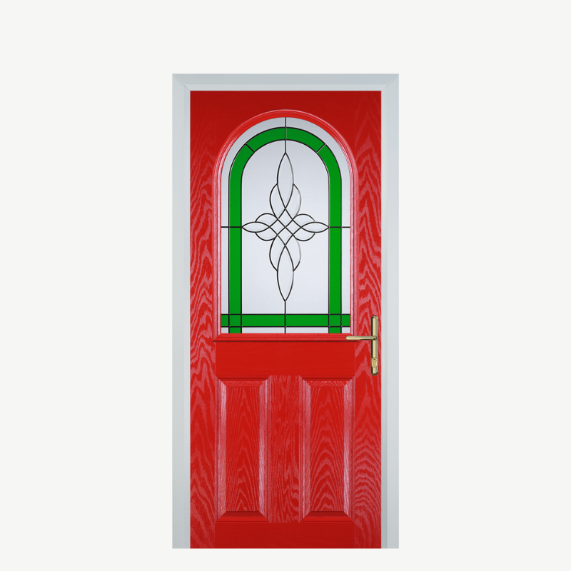 Introducing the Door E 2 Panel 1 Arch in stunning Poppy Red (High Gloss), a perfect blend of style and security for your home. This composite front door not only enhances your entryway with a vibrant pop of color but also provides durability and insulation.