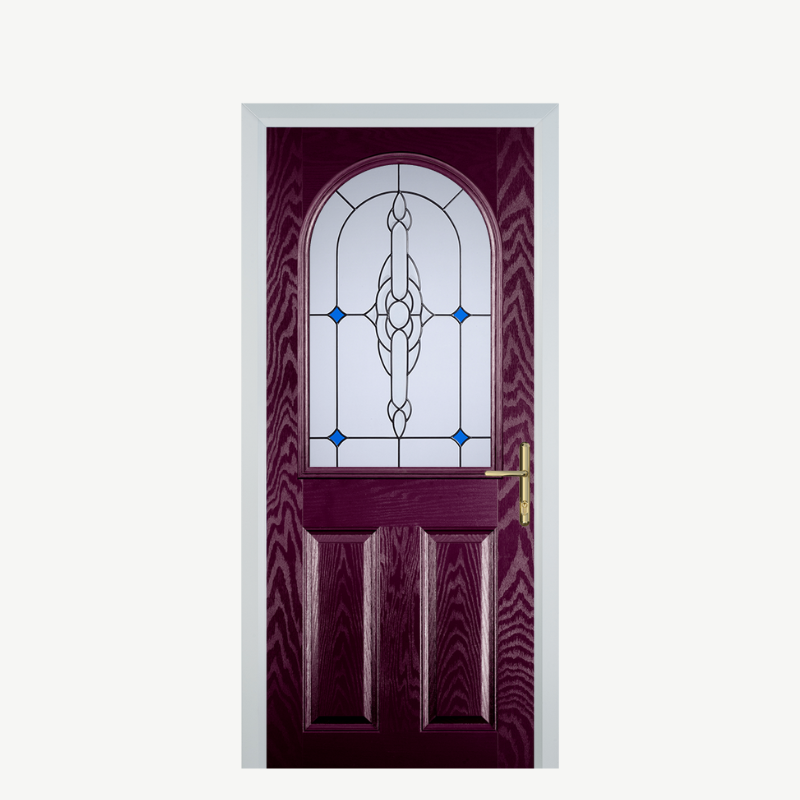 Introducing the Door E 2 Panel 1 Arch in Purple Violet Crystal Bohemia Blue, a stunning addition to any home that combines elegance with functionality. This composite front door not only enhances your curb appeal but also provides superior security and insulation, making it an ideal choice for modern homeowners.