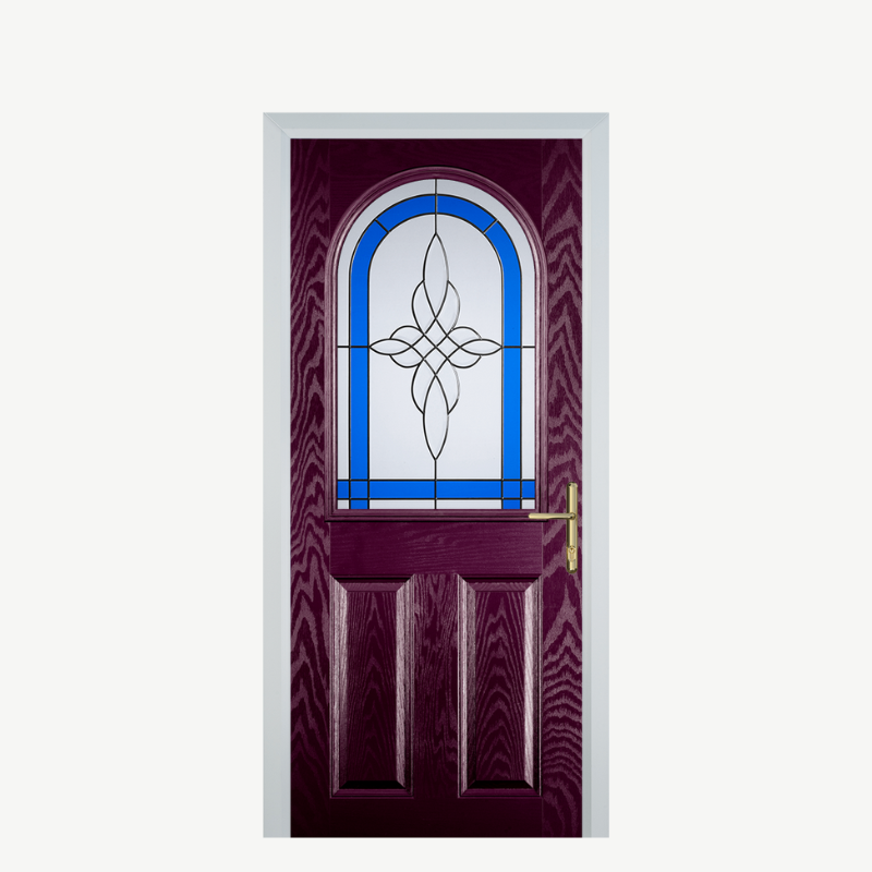 Introducing the Door E 2 Panel 1 Arch in Purple Violet Crystal Harmony Blue, a stunning addition to your home that seamlessly blends elegance and modern design. This composite front door is not just an entrance; it is a statement piece that enhances your property’s curb appeal while providing exceptional durability and security.