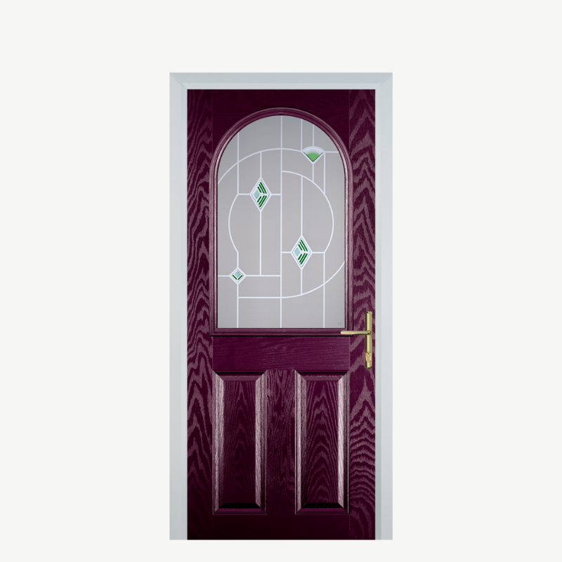 Transform your entrance with the Door E 2 Panel 1 Arch Purple Violet Murano Green, where style meets practicality.