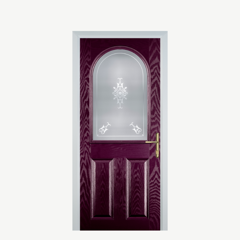 Introducing the Door E 2 Panel 1 Arch in a stunning Purple Violet finish from Straxton, the perfect blend of elegance and durability for your home. This composite front door not only enhances your entryway with its striking color but also provides exceptional security and insulation.