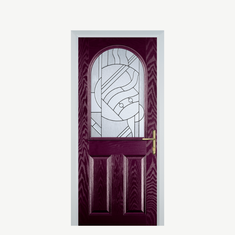 Introducing the Door E 2 Panel 1 Arch in a striking Purple Violet finish, a stunning addition to any home that combines elegance with modern artistry. This composite front door not only enhances your entryway but also provides security and durability, making it an essential investment for your property.